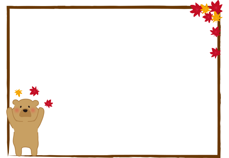 紅葉と遊ぶヒグマの枠(横)