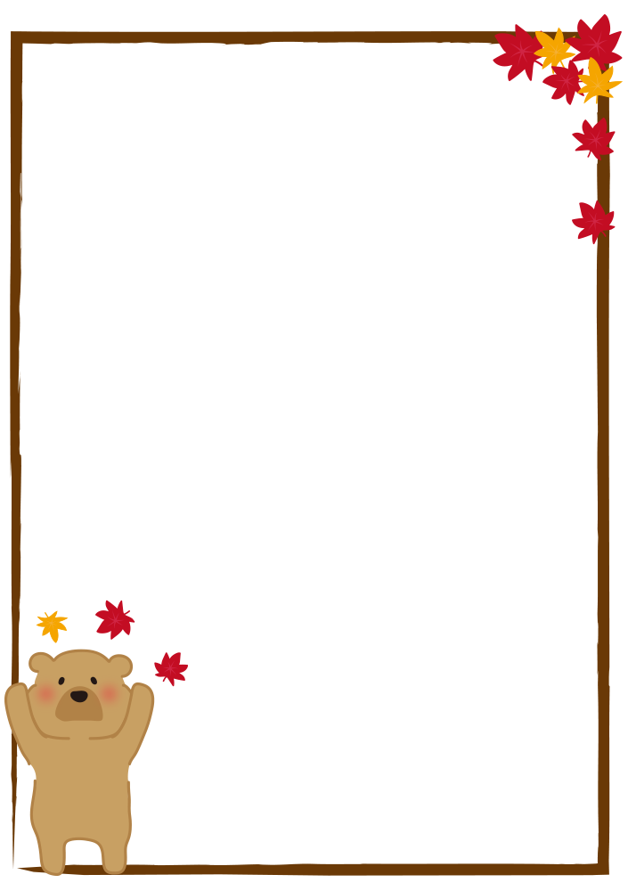 紅葉と遊ぶヒグマの枠(横)
