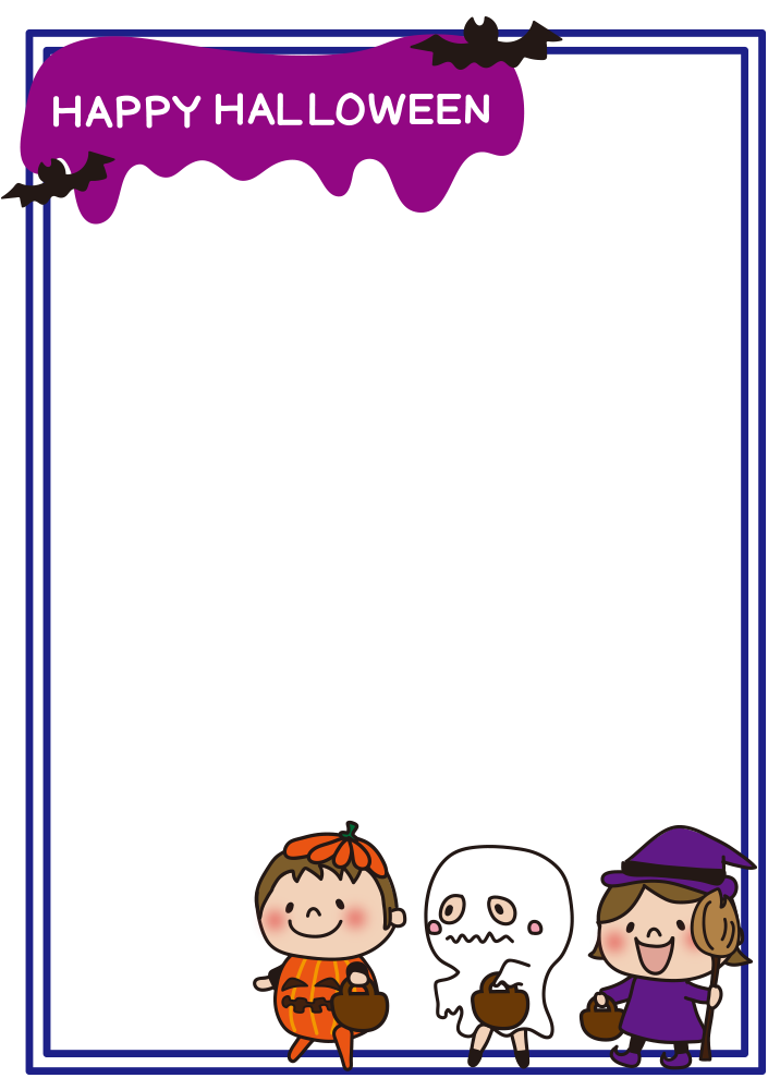 ハロウィンで仮装をした子供たちの枠(横)