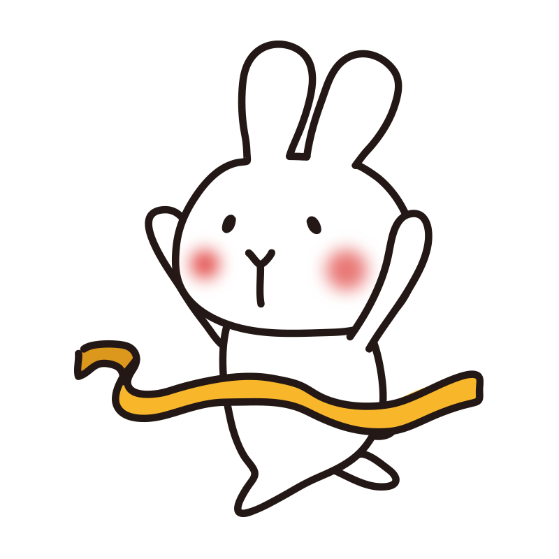 ゴールテープを切る白うさぎ