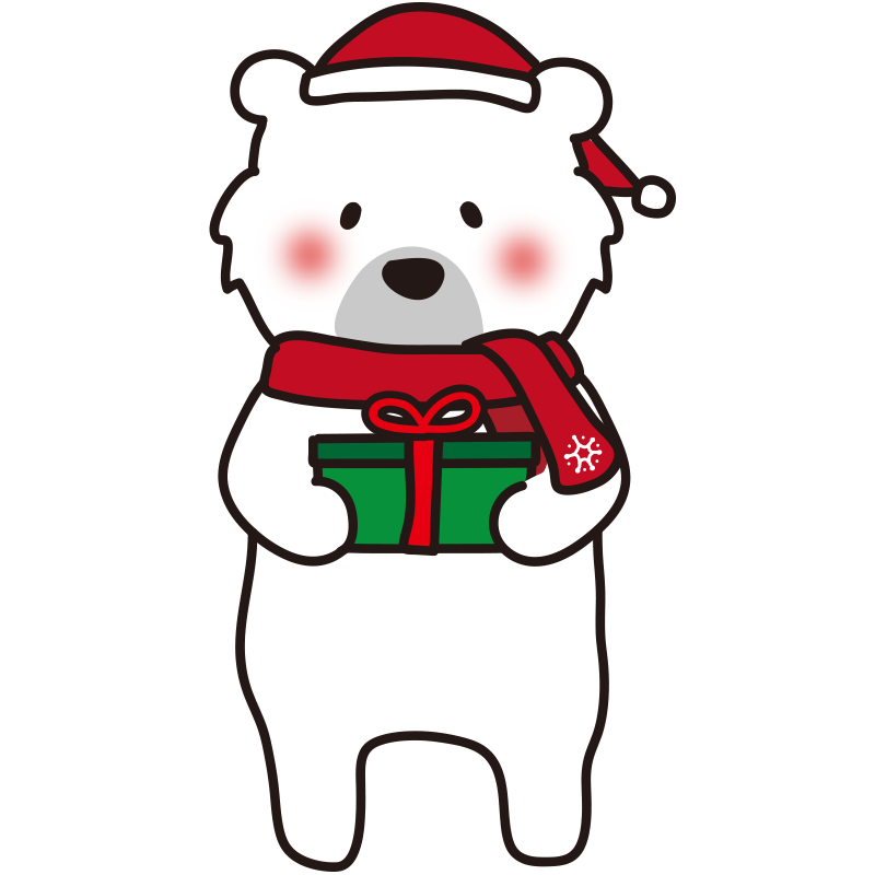 HOME動物 クリスマスプレゼントを持っている白クマ 2022年11月2日 動物 クリスマスプレゼントを持っている白クマ クリスマスカラーの丸で囲まれている枠 クリスマスプレゼントを2つ持っている白クマ