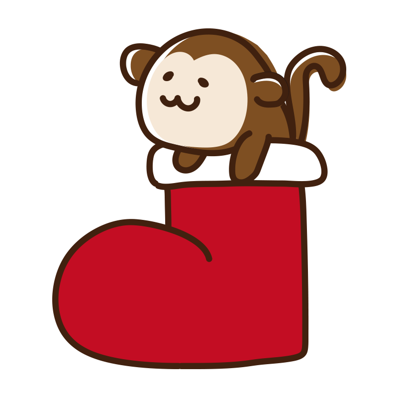 クリスマスブーツから顔を出すサル