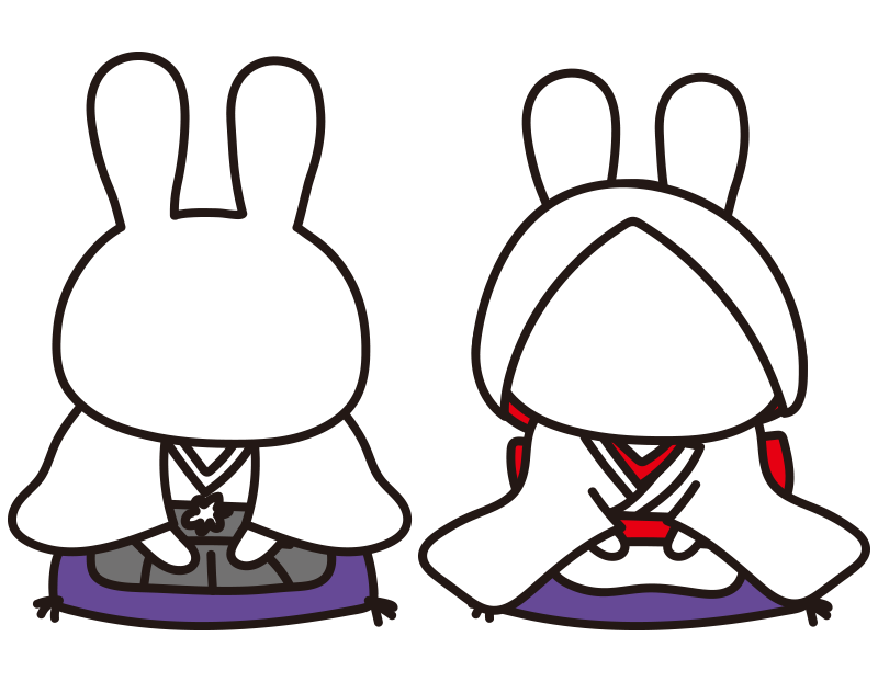 【顔はめ】シリーズは手持ちの写真に重ねてお使いいただくイラストです。ダウンロードを下にある「○○をダウンロード」ボタンからダウンロードしていただくことで、sample写真の部分が透明になります。 【顔はめ】白うさぎの和装の結婚式