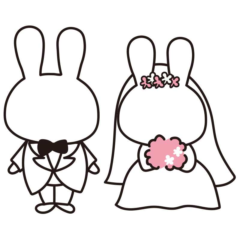 【顔はめ】シリーズは手持ちの写真に重ねてお使いいただくイラストです。ダウンロードを下にある「○○をダウンロード」ボタンからダウンロードしていただくことで、sample写真の部分が透明になります。 【顔はめ】白うさぎのウエディングドレスの結婚式