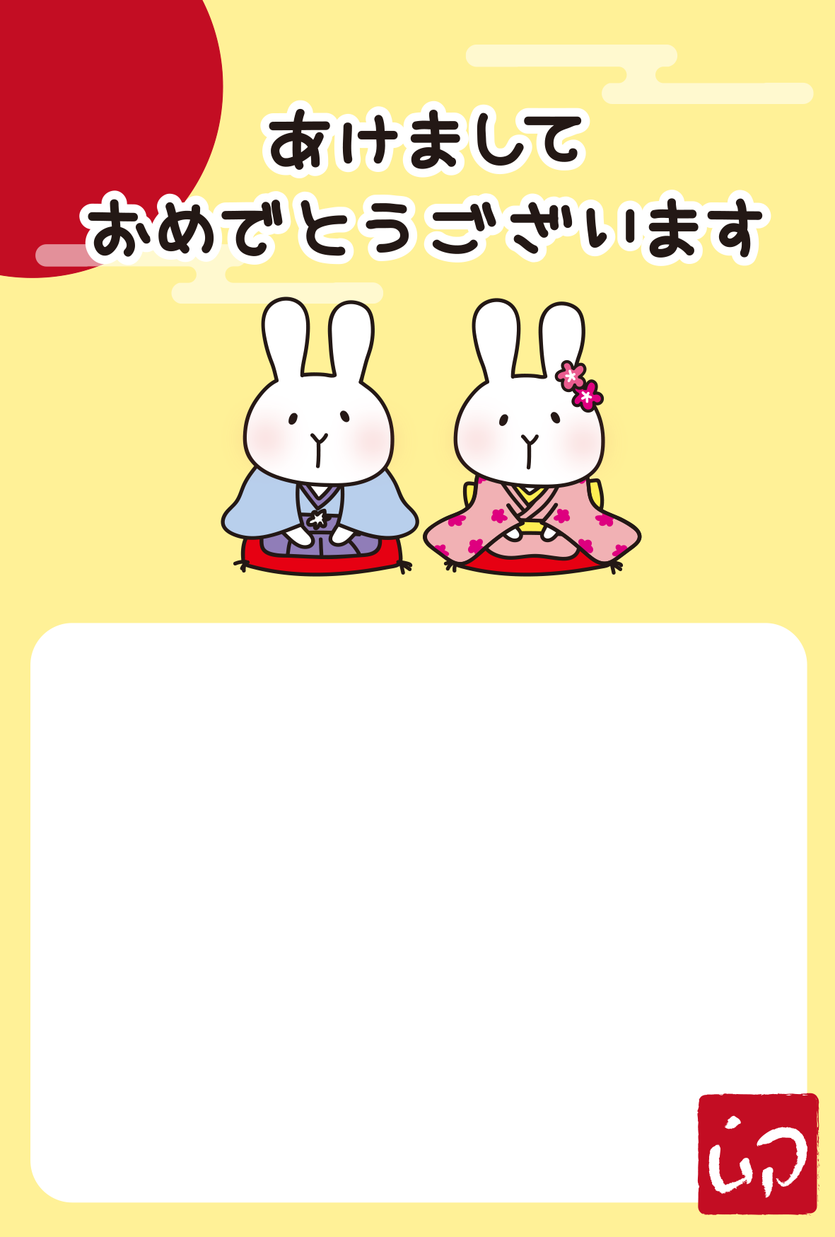 HOME枠 【年賀状】着物で新年のあいさつをする白いうさぎ(縦) 2022年11月12日 枠 【年賀状】着物で挨拶する白うさぎ(縦) 和風うさぎ2(グレー) 【年賀状】着物で新年のあいさつをする白いうさぎ(横)