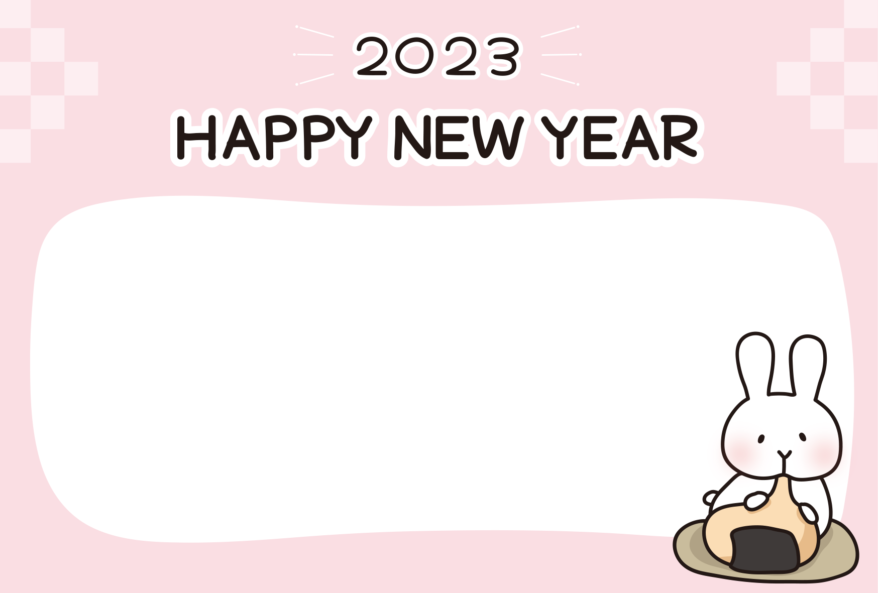 【年賀状】お餅を食べている白うさぎ(横)