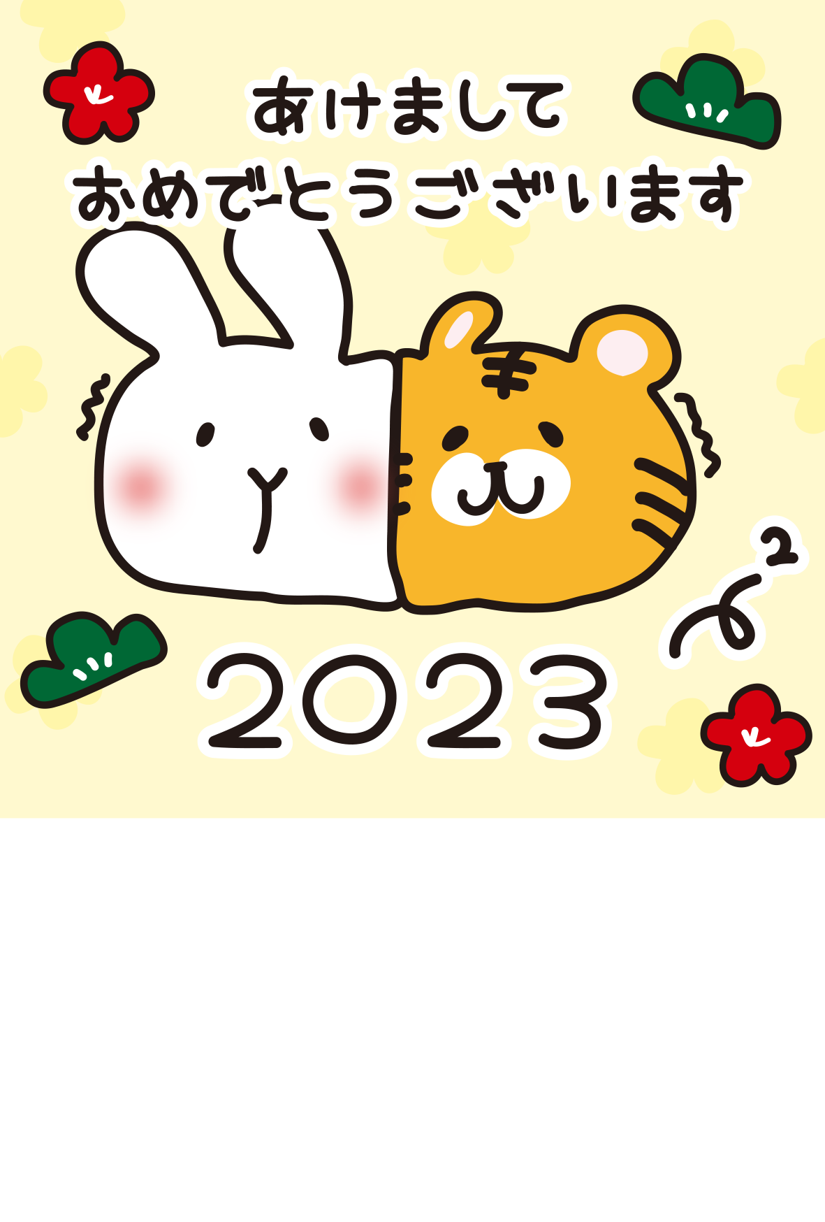 【年賀状】押し合う干支の虎とうさぎ