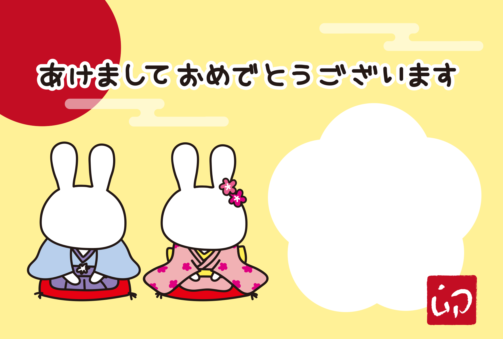 手持ちの写真に重ねてお使いいただくことができます。ダウンロードを下にある「○○をダウンロード」ボタンからダウンロードしていただくことで、sample写真の部分が透明になります。 【年賀状】着物で新年のあいさつをする白うさぎに顔はめできる年賀状