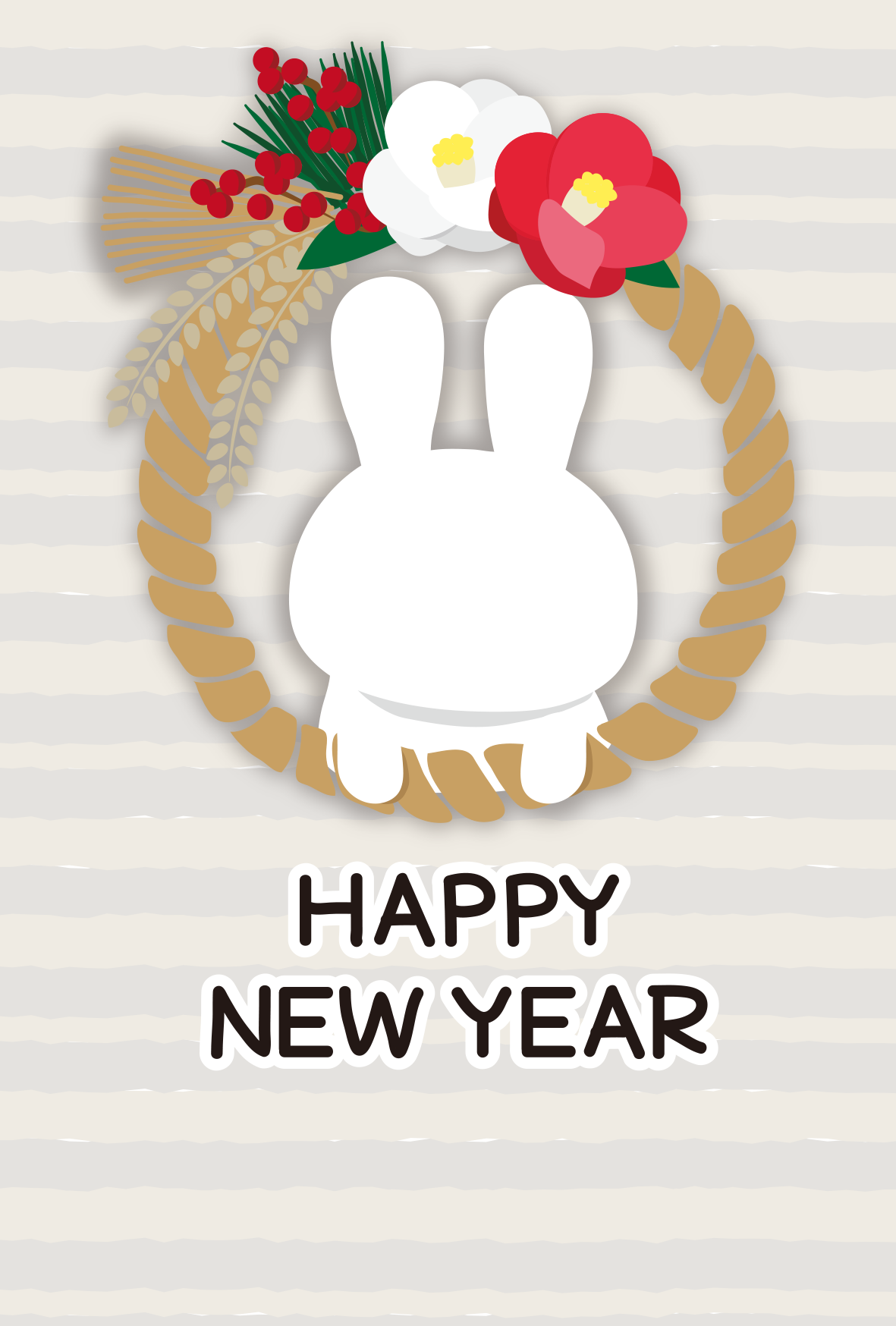 【年賀状】しめ縄から顔を出す白いうさぎの顔はめ