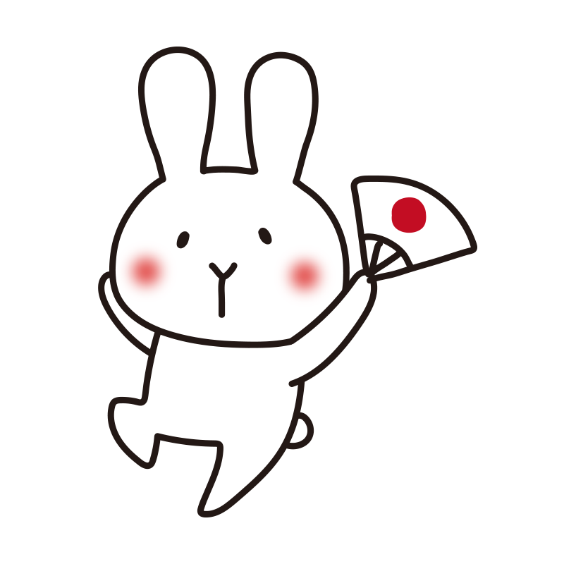 扇子を持って踊る白うさぎ
