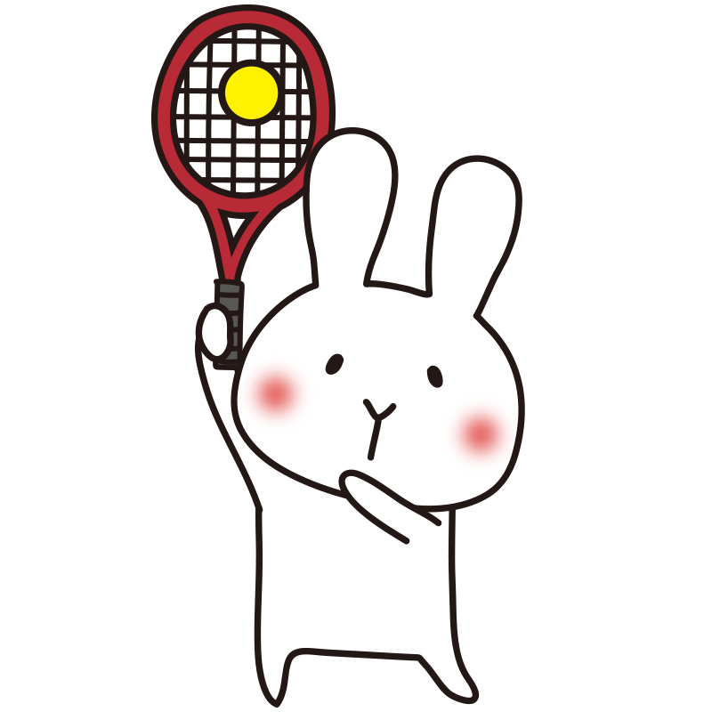 テニスのサーブをする白うさぎ