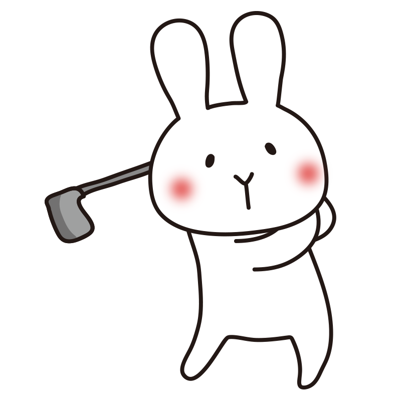 ゴルフのスイングをする白うさぎ