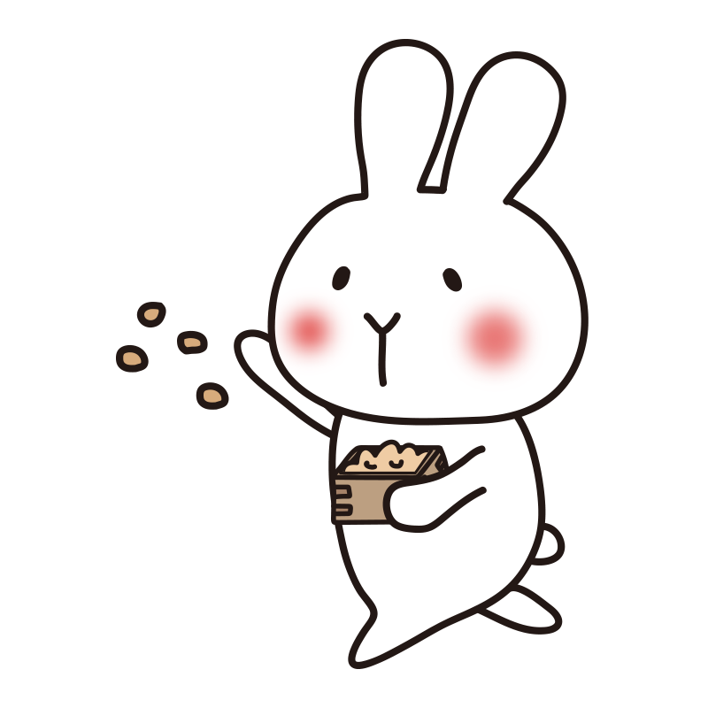 節分の豆まきをする白いうさぎ