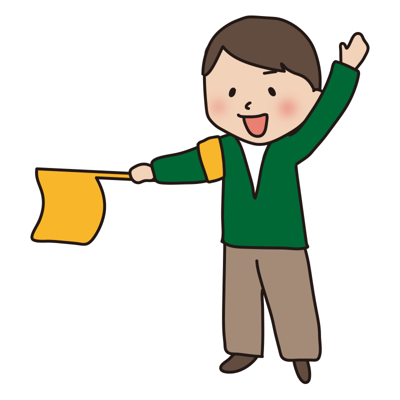PTAの旗振り当番をする男性2