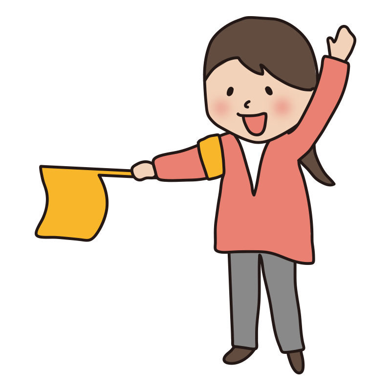 PTAの旗振り当番をする女性1