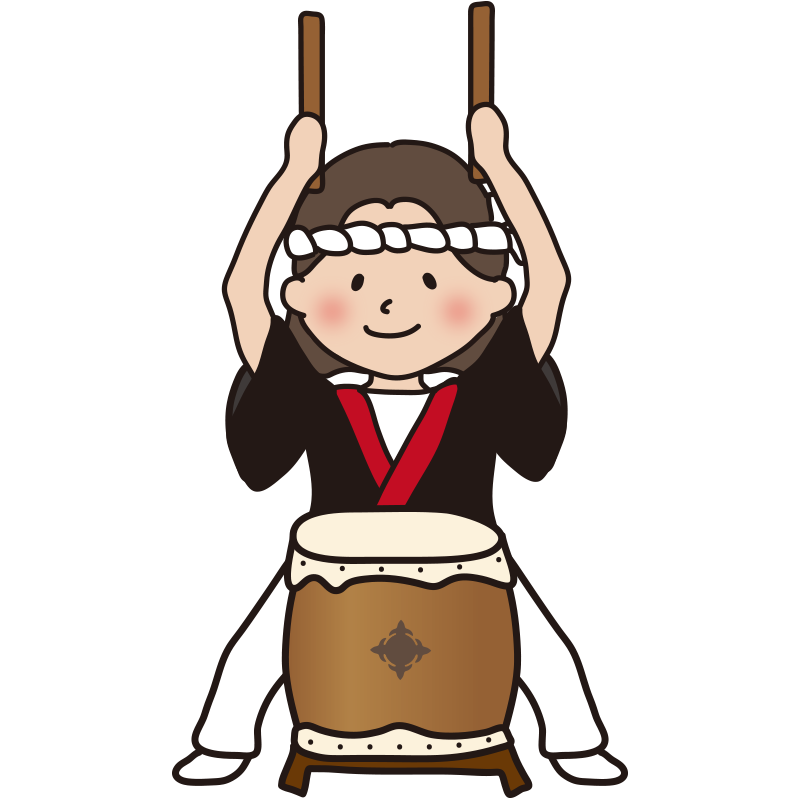 お祭りで太鼓をたたく女性1