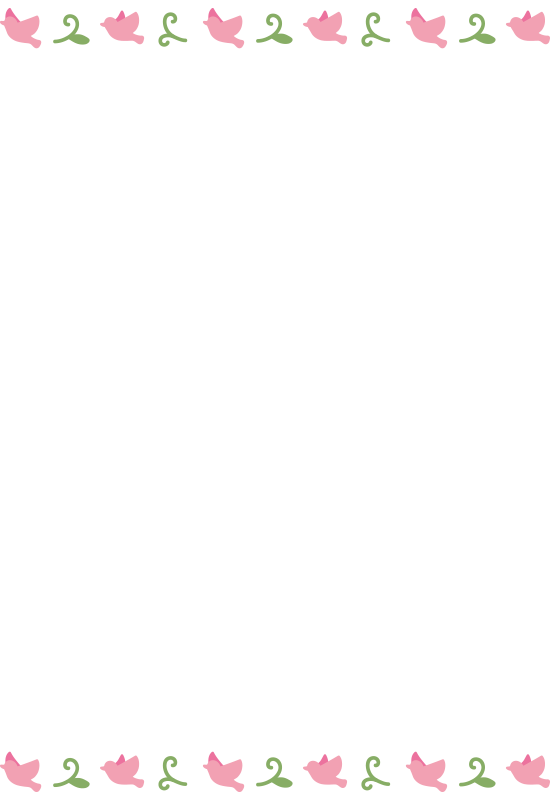 ピンクの鳥と葉っぱの枠(縦)