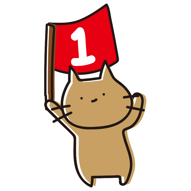 1の旗を持つゆるいねこ