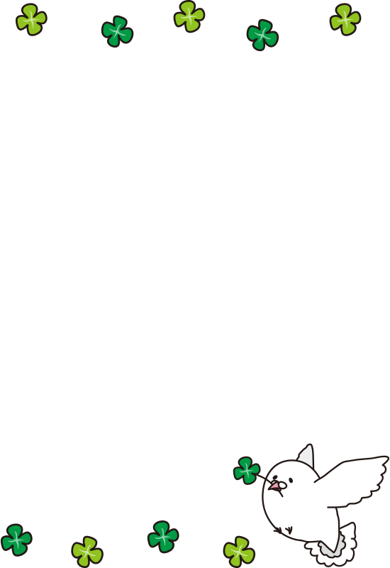 四葉のクローバーと白い鳩の枠(縦)