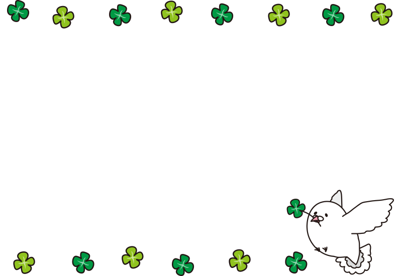 四葉のクローバーと白い鳩の枠(横)