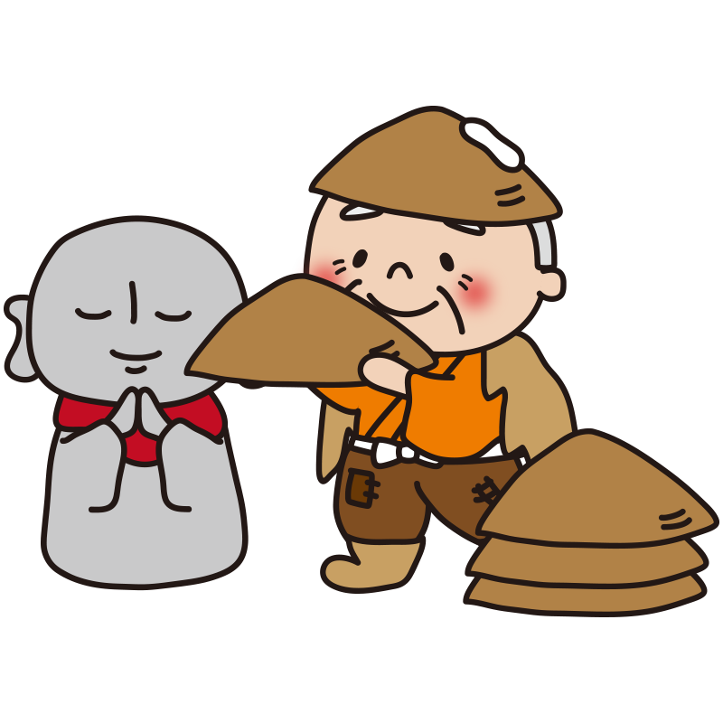 お地蔵様に笠をかぶせるおじいさん