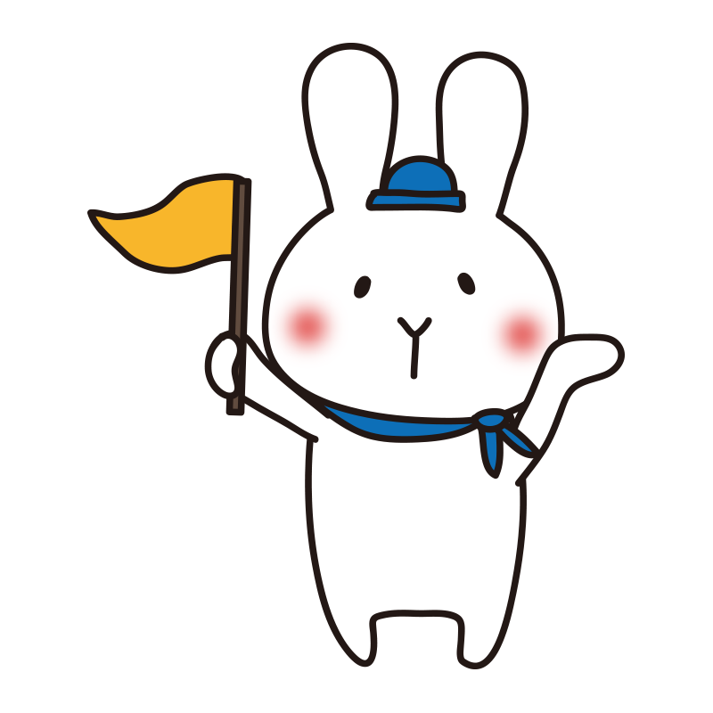 旗を持ってガイドをする白うさぎ1