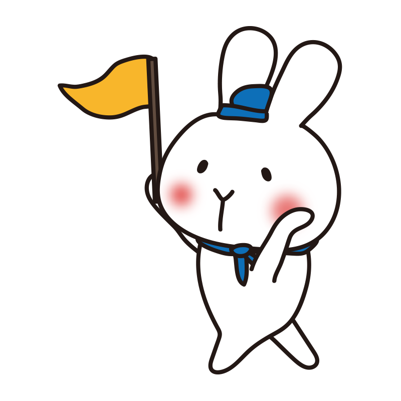 旗を持ってガイドをする白いうさぎ3
