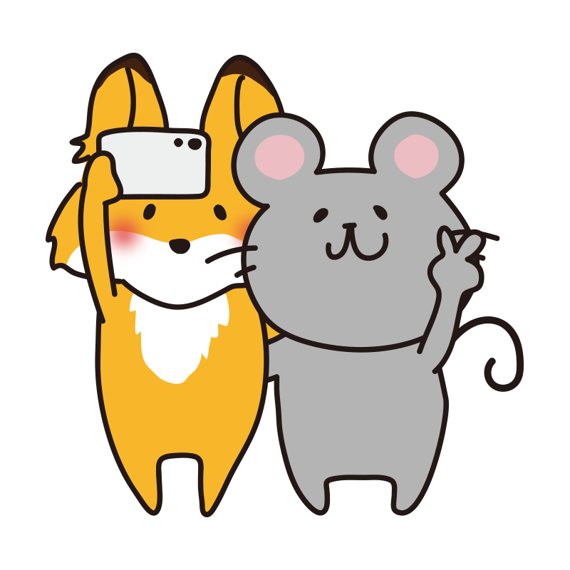 HOME動物 スマートフォンで写真を撮るキツネとねずみ 2023年4月19日 動物 スマートフォンで写真をとるキツネとねずみ カメラを持って旅行するツキノワグマ 写真撮影でポーズをとるキツネと白いうさぎとねずみ