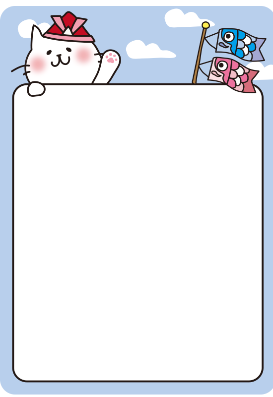 HOME枠 5月5日の子供の日をお祝いする白い猫の枠(縦) 2023年4月25日 枠 子供の日をお祝いする白い猫の枠(縦) キャリーバッグに乗る白い猫とパスポートの枠(縦) 5月5日の子供の日をお祝いする白い猫の枠(横)