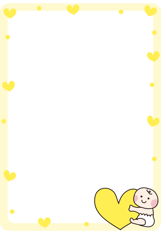 黄色いハートを持った赤ちゃんの枠(縦)
