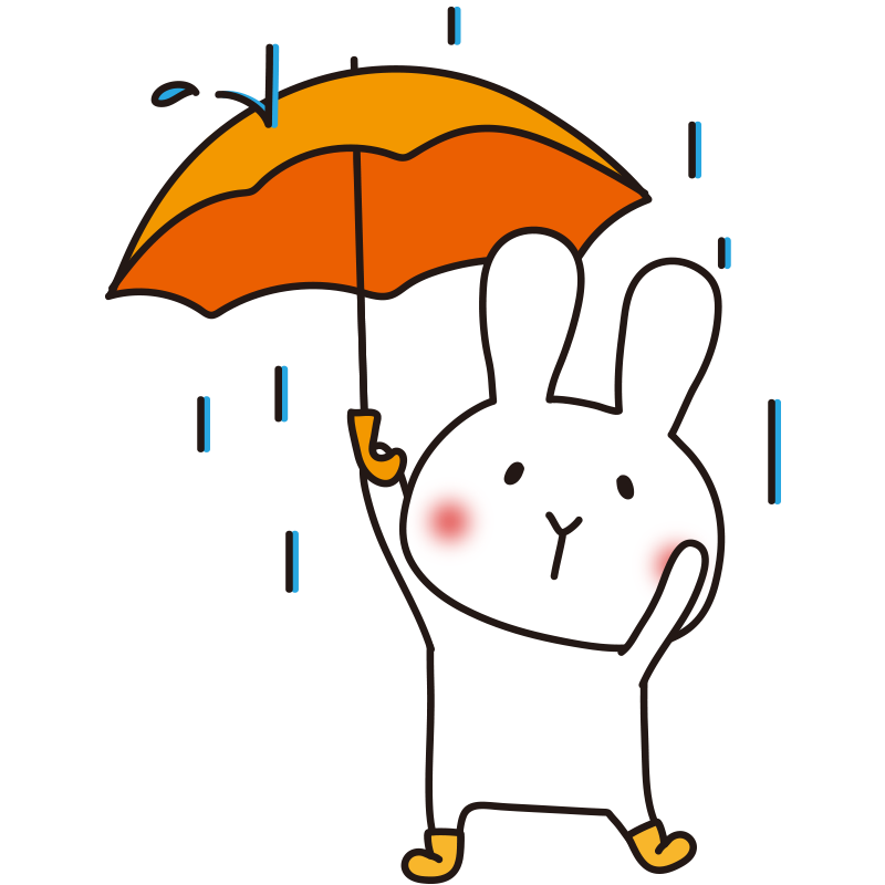 雨の日に傘をさす白いうさぎ