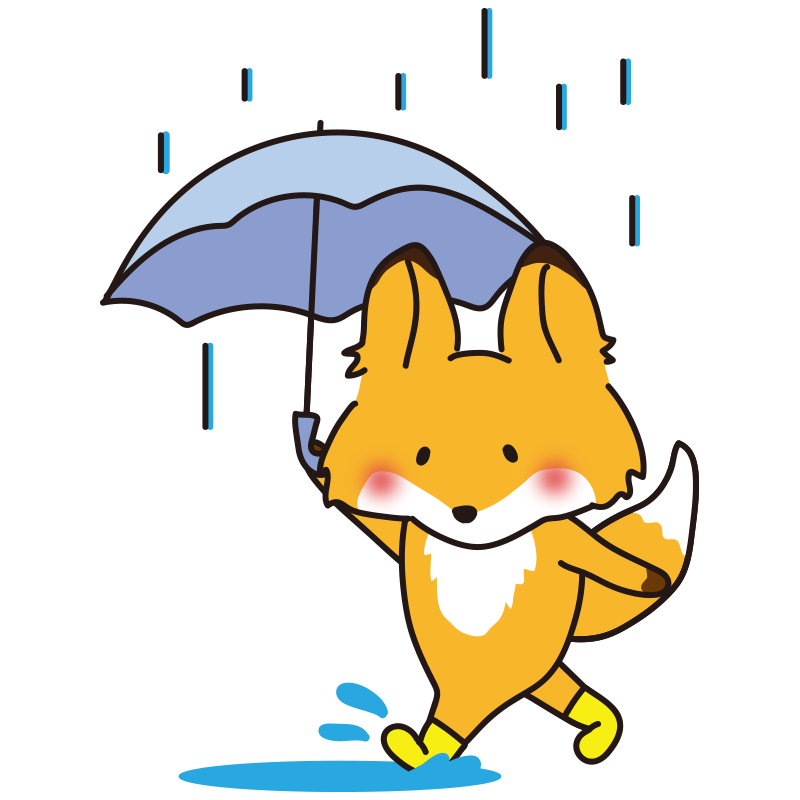 雨の日に傘をさすキツネ