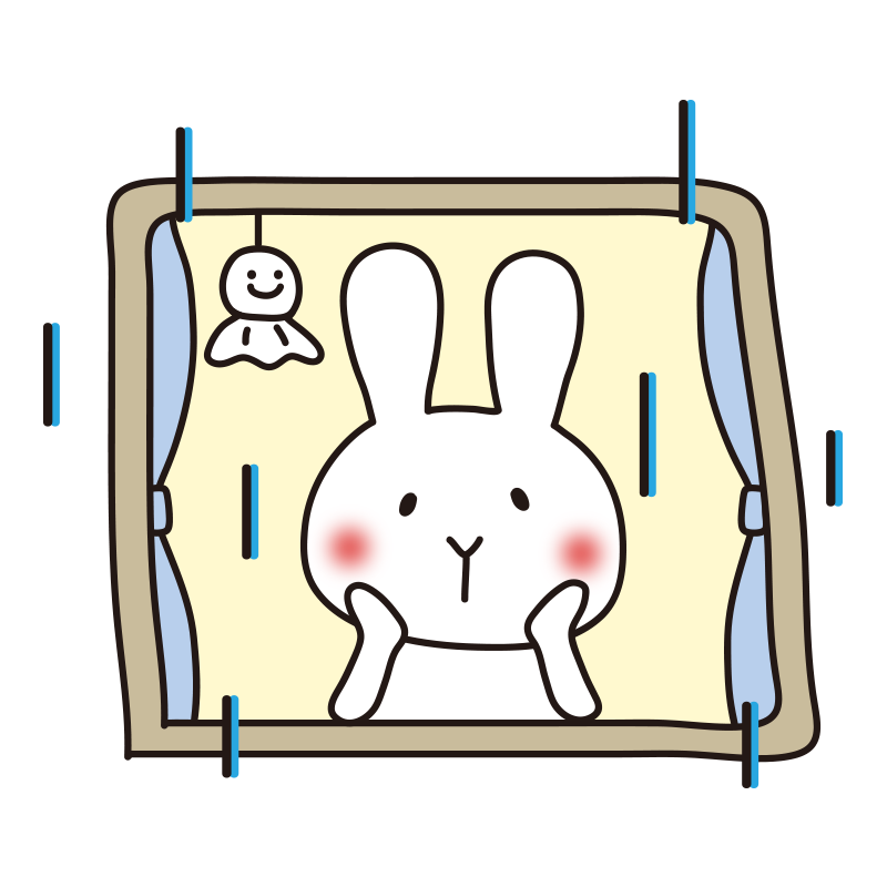 雨の日に窓から外を見つめる白いうさぎ