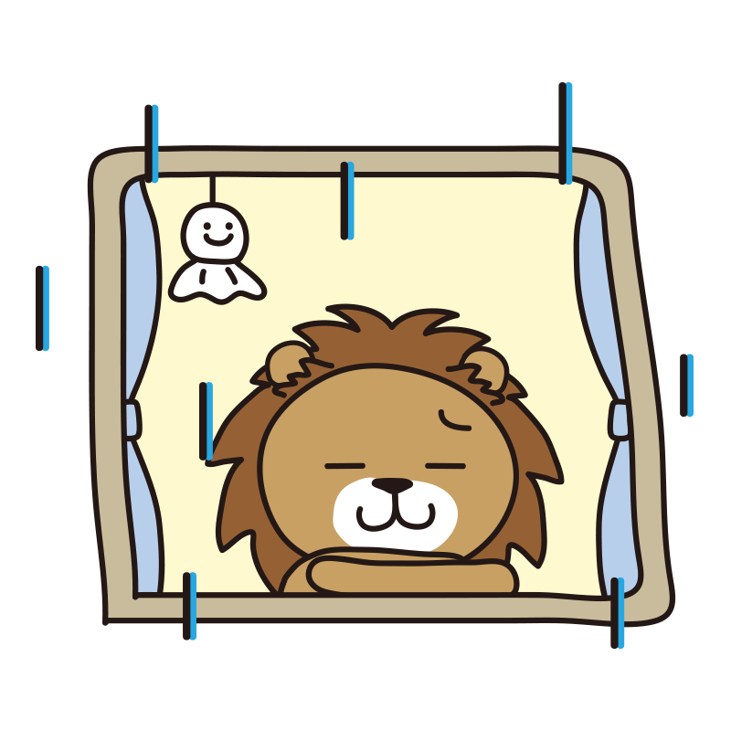 雨の日にがっかりした顔で外を見るライオン