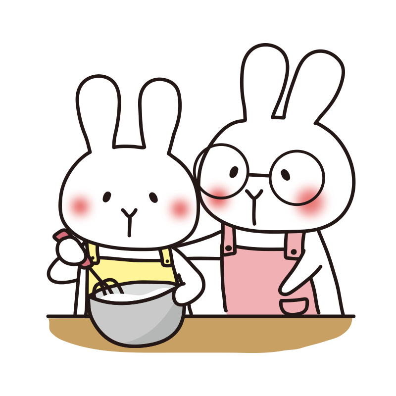 親子で料理する白いうさぎ