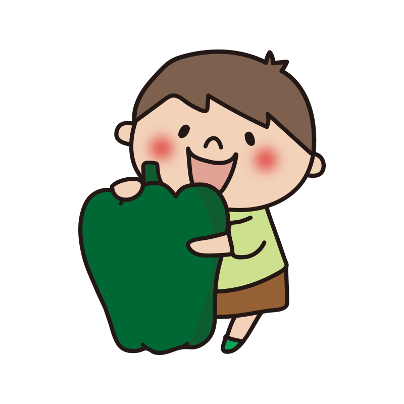 大きなピーマンを抱きしめる子供(男の子)