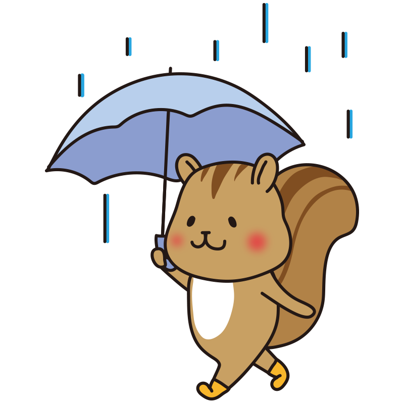 雨の日に傘をさすリス