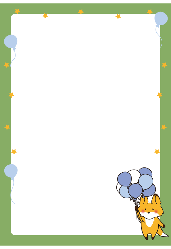 HOME枠 たくさんの青色の風船を持っているキツネの枠(縦) 2023年7月3日 枠 たくさんの青色の風船を持っているキツネの枠(縦) たくさんの青色の風船を持っているクマの枠(横) たくさんの青色の風船を持っているキツネの枠(横)