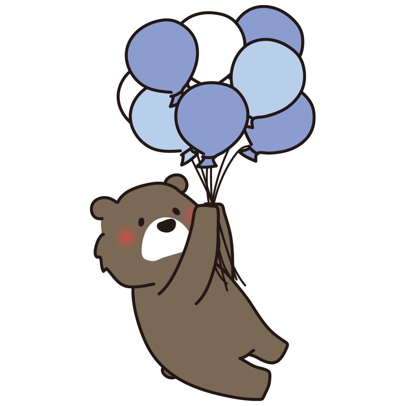たくさんの青色の風船を持っているクマ