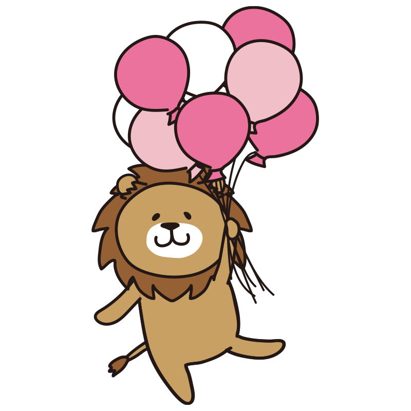 HOME動物 たくさんのピンク色の風船を持っているライオン 2023年7月3日 動物 たくさんのピンク色の風船を持っているライオン たくさんの青色の風船を持っているクマ たくさんのピンク色の風船を持っている白いうさぎ