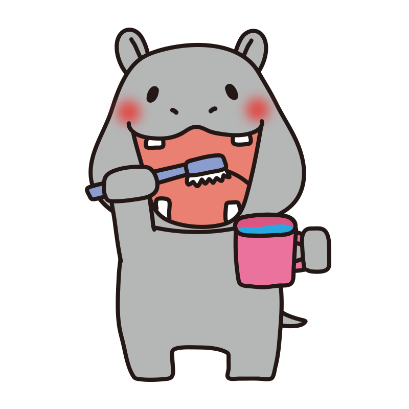 歯磨きをするカバ