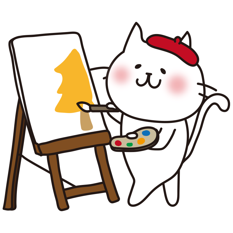 キャンバスに絵を描く白い猫