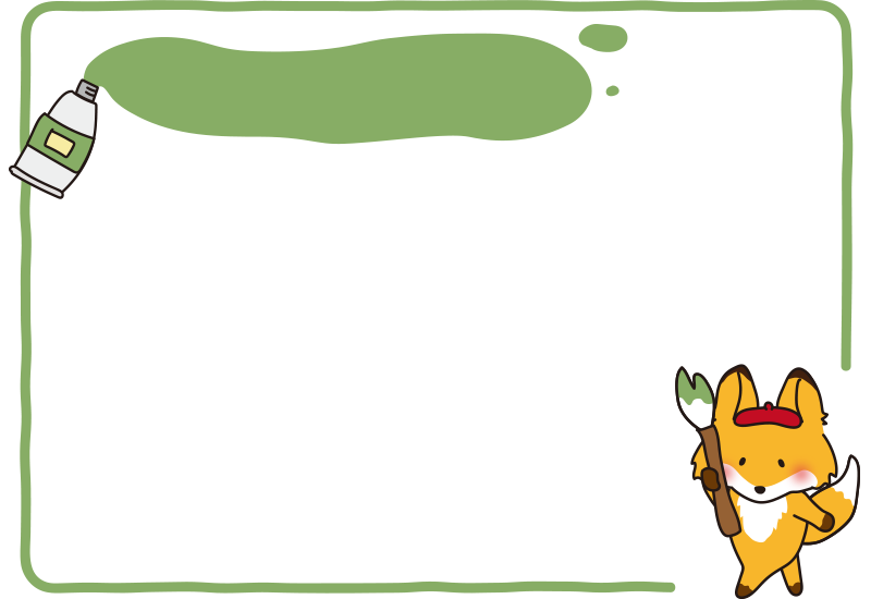 大きな筆で絵を描くキツネの枠(横)