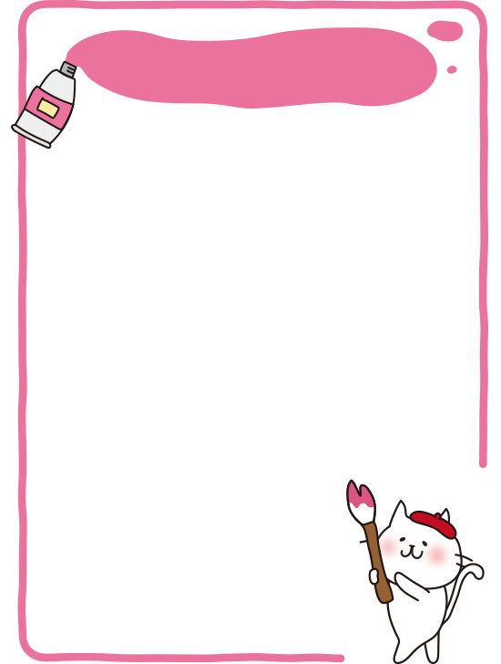 大きな筆で絵を描く白い猫の枠(縦)