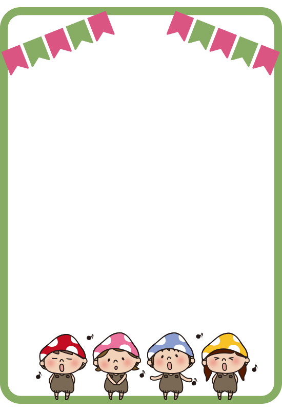 きのこの格好で歌を歌う子供たちの枠(縦)