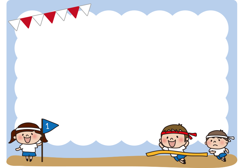 男の子がかけっこをする運動会の枠(横)