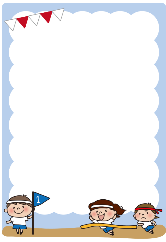 女の子がかけっこをする運動会の枠(縦)
