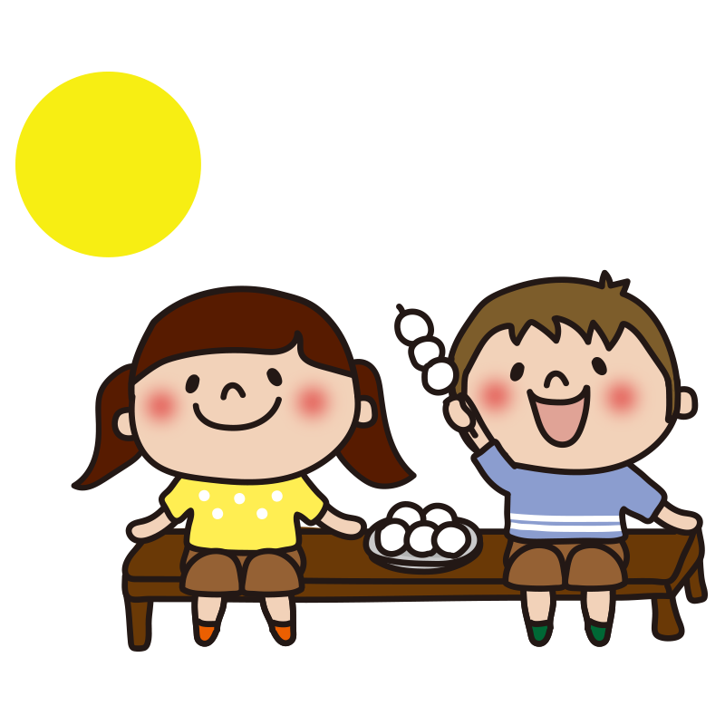 お月見をする子供たち
