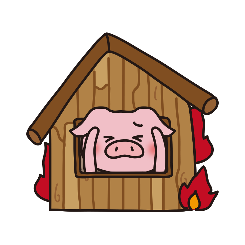 火をつけようとする怖くないオオカミ