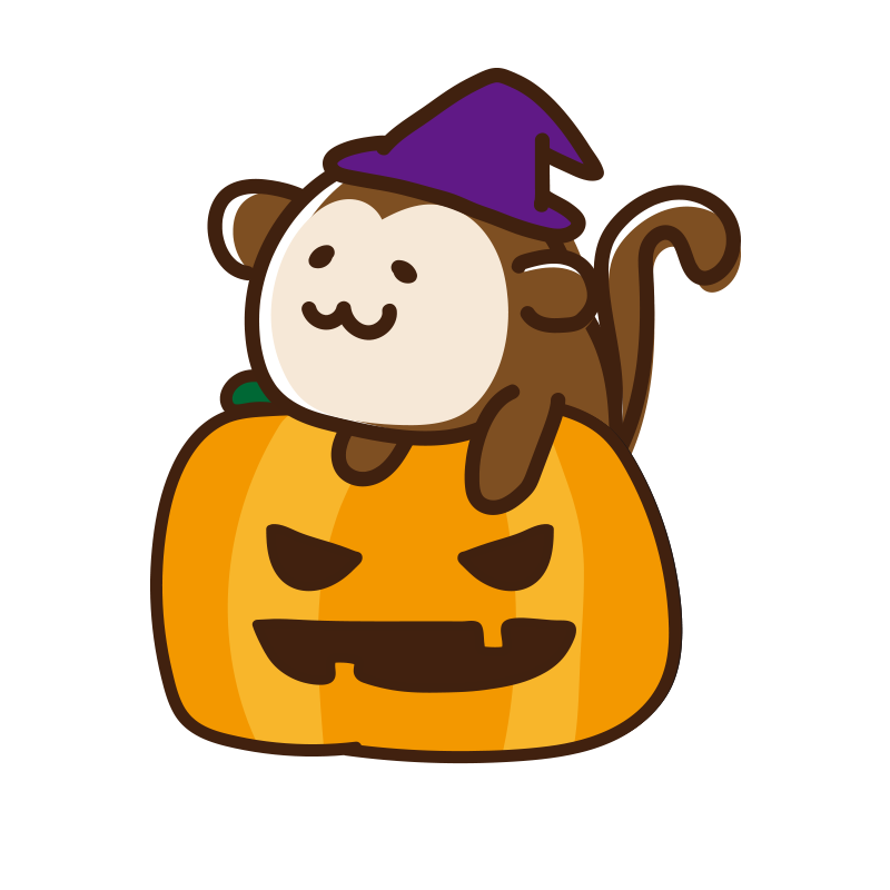 ハロウィンのカボチャに乗ったサル